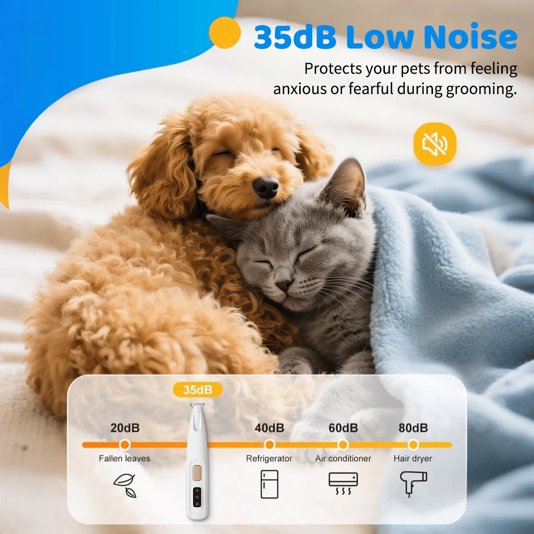 Our pet paw trimmer adopts ultra-low noise technology, the working noise is less than 35 decibels to protect your pets from feeling anxious or fearful during grooming, making the grooming experience more enjoyable for both you and your pet. This pet paw trimmer has a full body waterproof design that can be directly cleaned with water, easy to clean the hair, clean and hygienic.