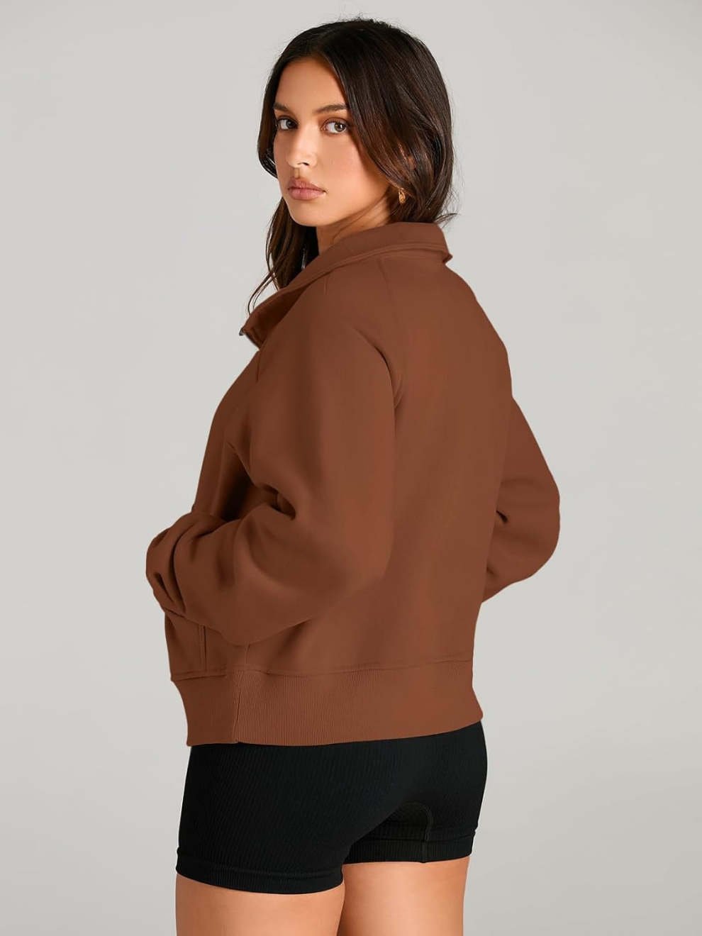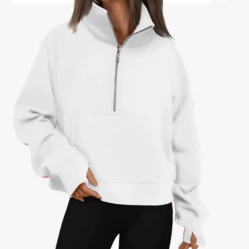 Womens Sweatshirts Half Zipper Crop Pullover Funnel Neck Fleece Lined Zip Up Long Sleeve Tops Thumb Hole